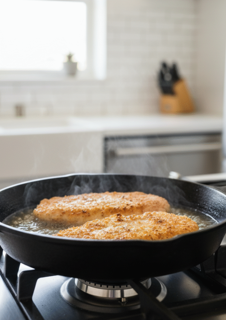 - Pan-fry: Heat olive oil 🫒 in a big skillet over medium heat 🔥 then cook each piece for about 3–4 minutes per side until golden brown but not fully cooked yet 😋